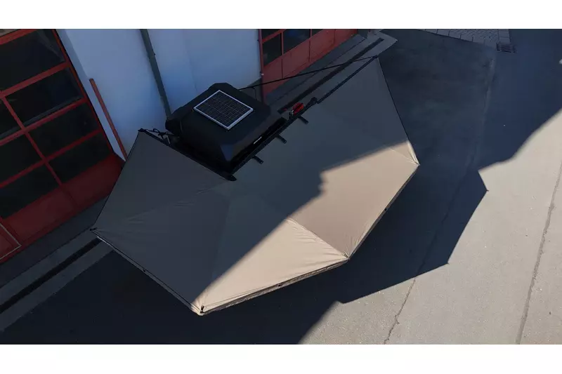 linke Seite freitragende 270 Grad Markise von Rhino Rack